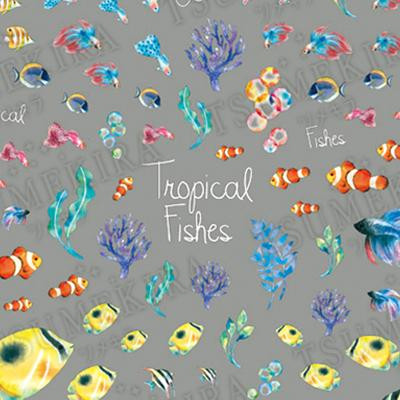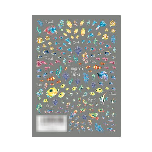 | 綺麗な熱帯魚がたくさんデザインされたネイルシールです。爪先でアクアリウムのような雰囲気が表現できる繊細なデザインです。 |