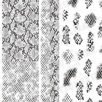 | パイソン柄のネイルシールです。お好きな形にカットして使用できるサイズと、部分使いにできるサイズがあるので、様々なデザインが楽しめます。 |