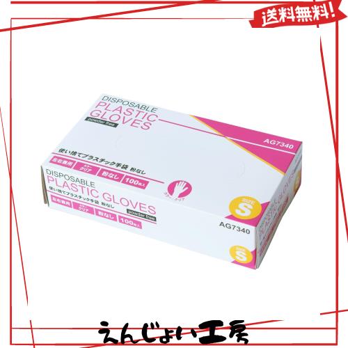 [ACE] エース プラスチック手袋 使い捨て手袋 パウダーフリー 粉なし 1箱100枚入 Sサイズ AG7340