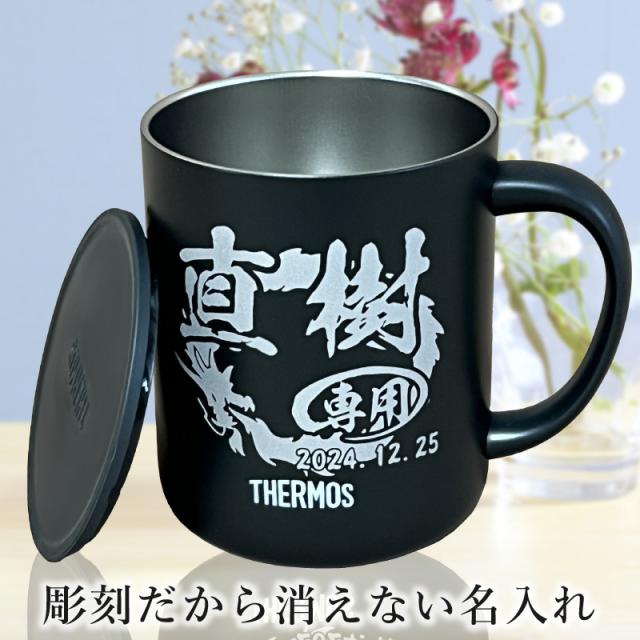 マグカップ 蓋付き サーモス 名入れ プレゼント 真空断熱 保温 保冷 ステンレス 名前入り 彫刻 刻印 コップ フタつき 父の日 母の日 還暦祝い 退職 誕生日 記念品 送別会 敬老の日 ネーム入れ 男性 女性 バースデー ギフト 送料無料 450ml 背景/イラスト入り 450ml CI107