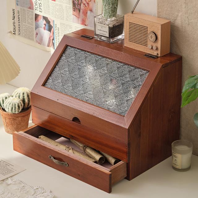 引き出し付き収納ボックス 収納ボックス メイクボックス 大容量 木製 コスメボックス 収納 キッチン 可愛い おしゃれ 卓上 小物入れ 小物収納 引き出し 文房具 化粧品 メイクケース 収納 スキンケア インテリア ナチュラル ヴィンテージ 【ヴィンテージスタイル】