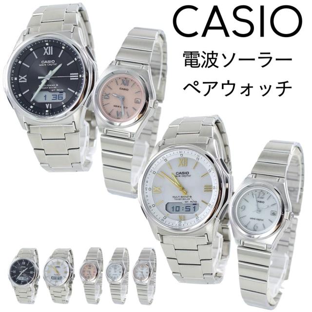 ペアウォッチ 電波ソーラー 腕時計 ペア腕時計 カシオ ウェーブセプター メンズ レディース カップル 夫婦 シンプル 電池交換不要 時刻合わせ不要 ステンレス ベルト ベルト調整 防水 誕生日プレゼント 国内正規品 選べる6ペア