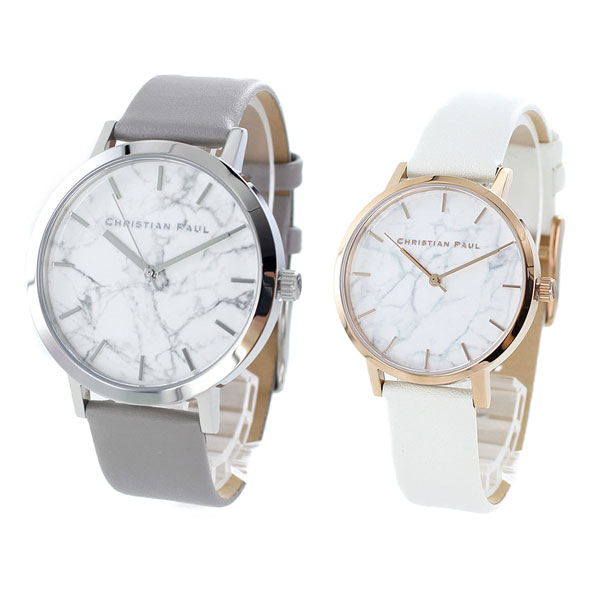 クリスチャンポール シンプル オシャレ カップル ペア ウォッチ 腕時計 手表 メンズ レディース グレー ホワイト レザー 誕生日プレゼント 成人 卒業 入学