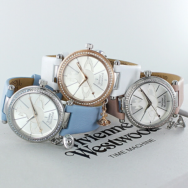 ヴィヴィアン ウエストウッド ブルー ホワイト ピンク レザー 選べる3カラー 揺れる オーブチャームつき 女性 腕時計 手表 女友達 娘 お母さん 誕生日 レディース 成人 卒業 入学