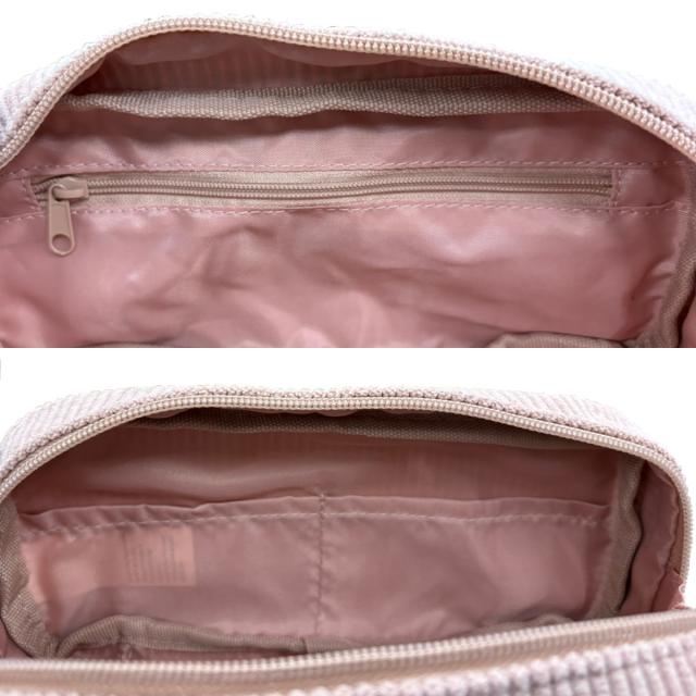内側にはファスナー付きポケットと2つのポケットがあり、ポーチの中でしっかりと仕分けることができます。