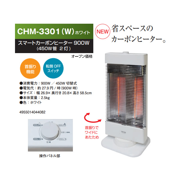 カーボンヒーター 900W (450W管2灯)ホワイト CHM-3301(W)