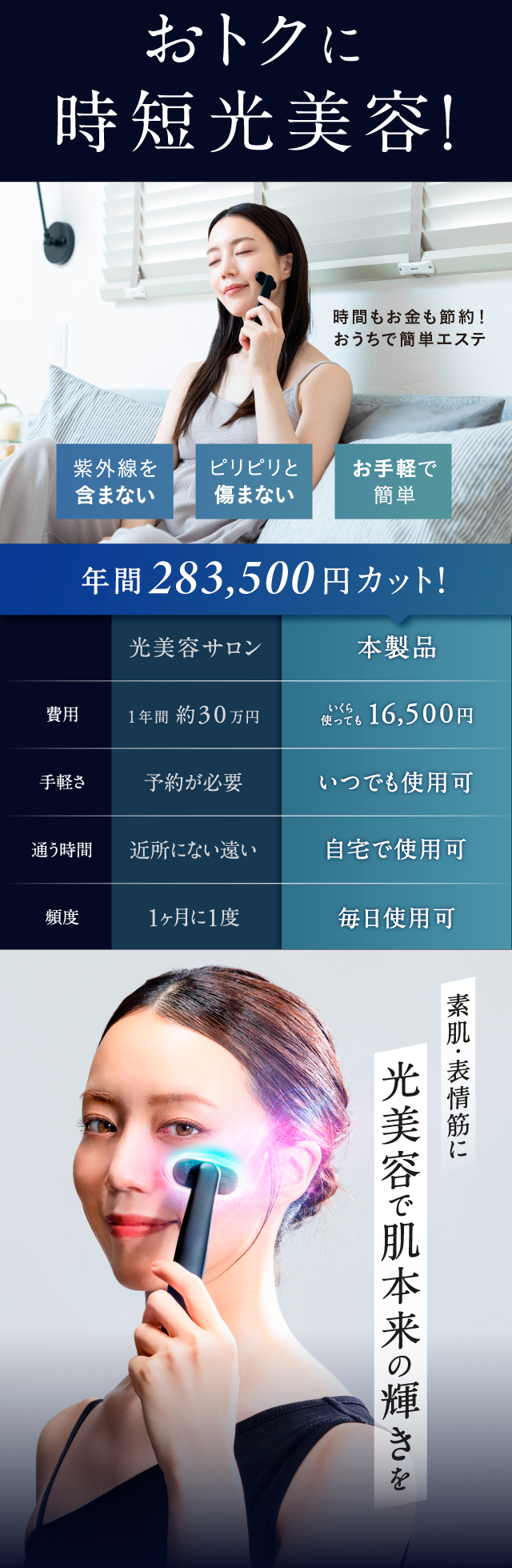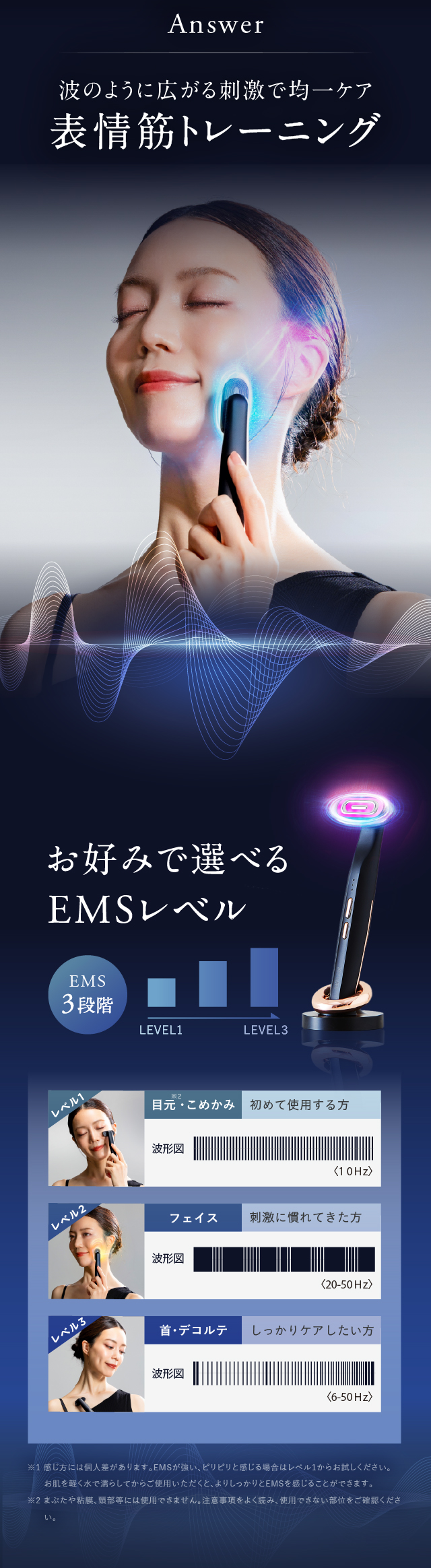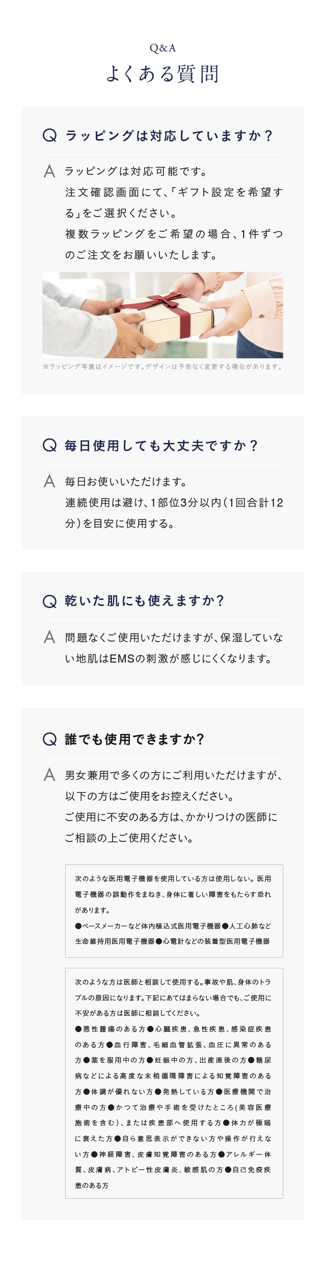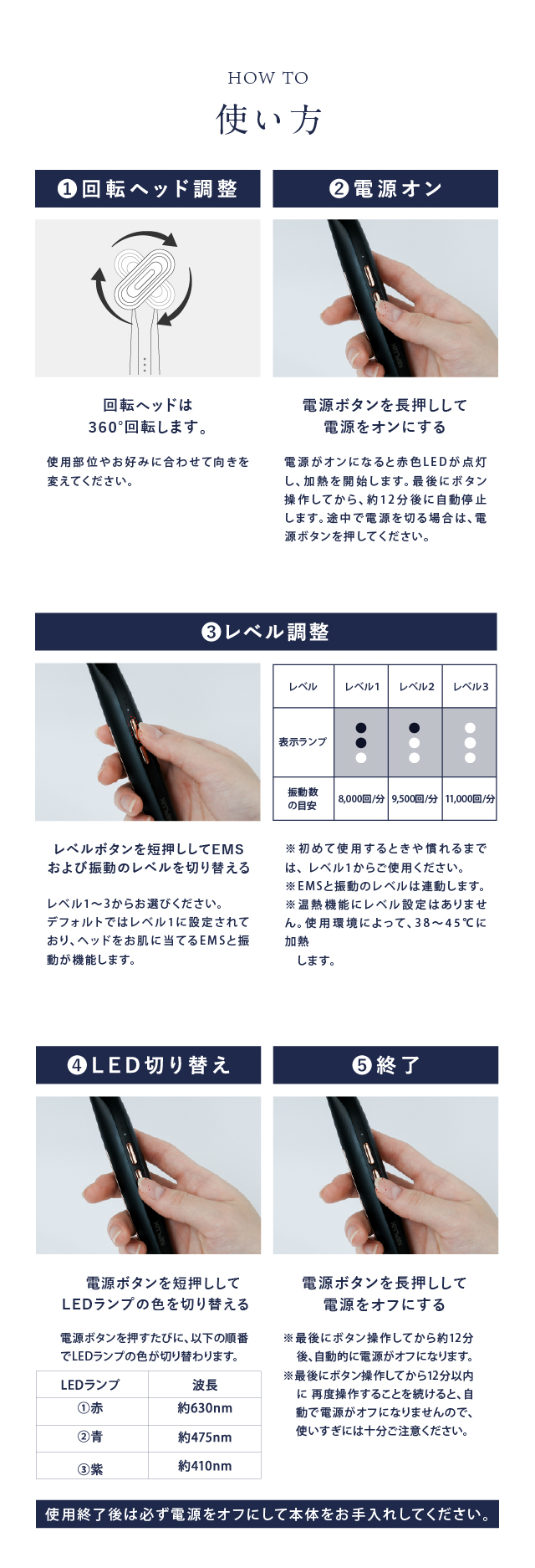 ●歯の治療中の方や歯に詰め物(金歯、銀歯)がある方は、使用を控えるか部位をずらして使用してください。