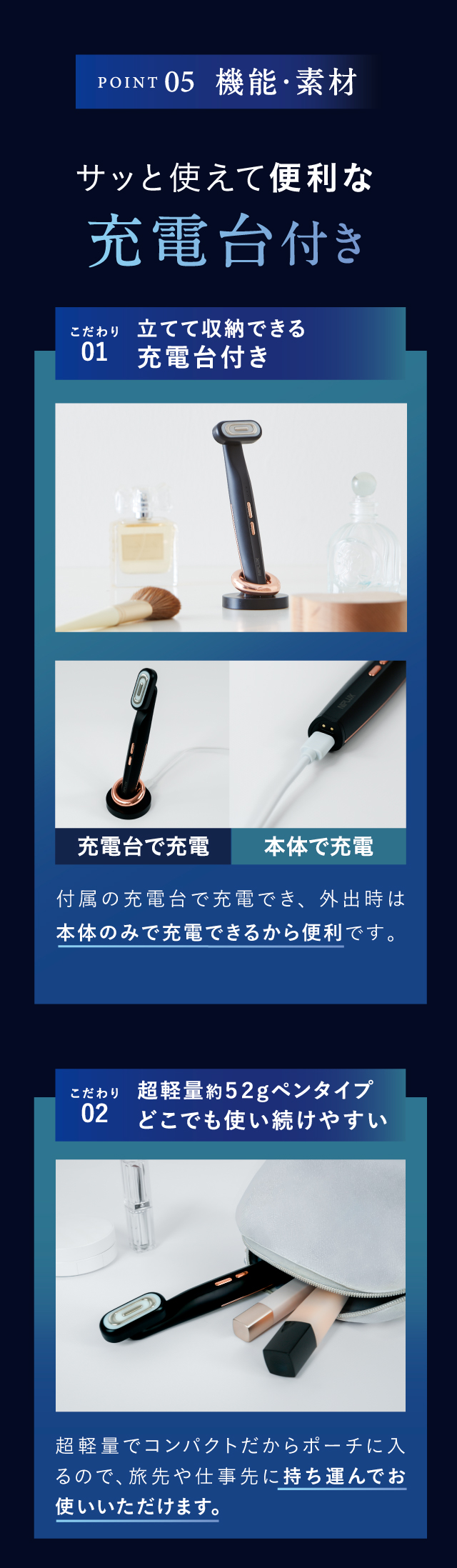 | 重 量 | 本体:約52g 充電台:約81g |