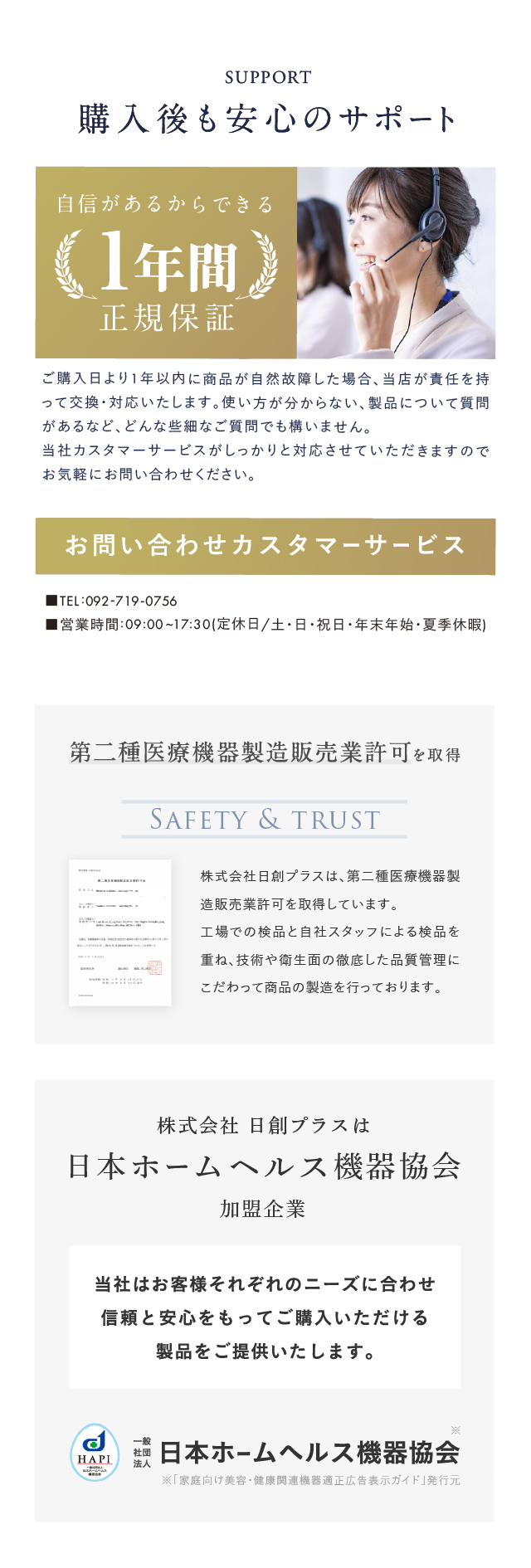 | 保証期間 | 購入日より1年間 |