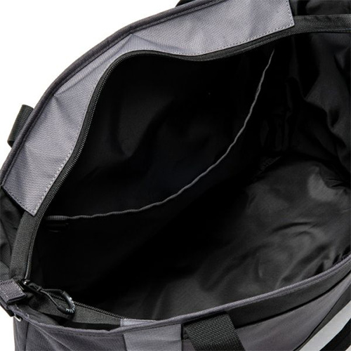 安心して貴重品を収納できるマチ付きフロントポケットと、バッグの中身が見えない上部ファスナーが特徴のトートバッグです。