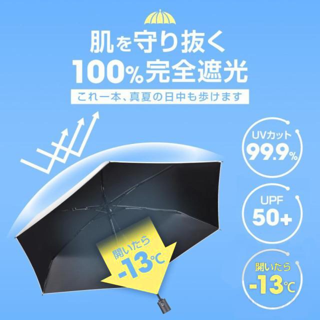 【完全遮光 UPF50+折畳み日傘】高密度生地に多層コーティングを施しており、遮光率100%、紫外線遮蔽率99.9%以上の完全遮光日傘です。