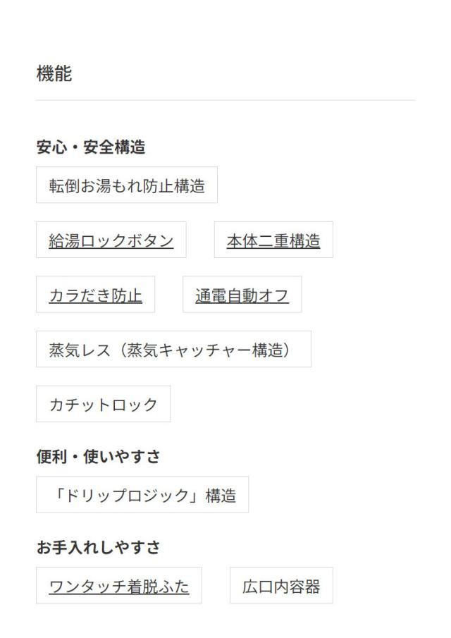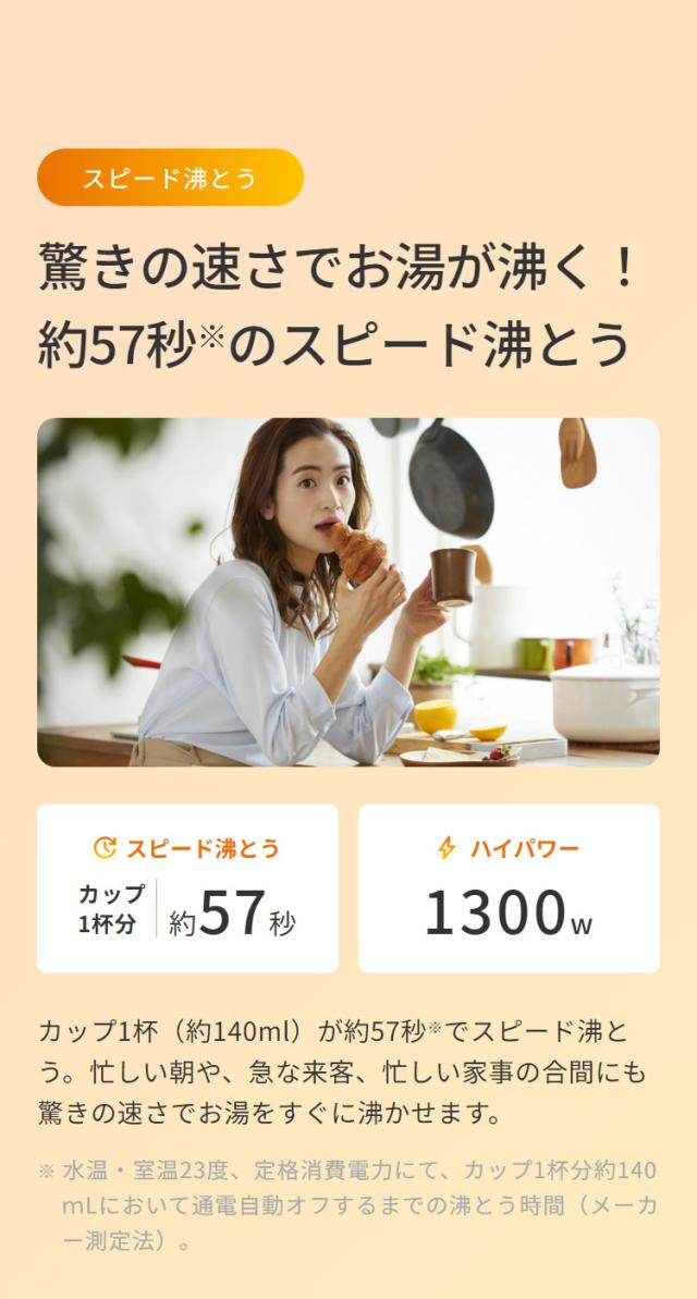 沸とう時間 (約):カップ1杯:カップ1杯:57秒/満水:5分