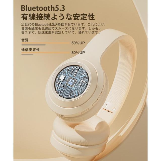 【正規品】 ワイヤレスヘッドホン イヤホン Bluetooth5.3 ヘッドセット HiFi高音質 クリア通話 マイク内蔵 ステレオサウンド ゲーミングイヤホン SDカード対応