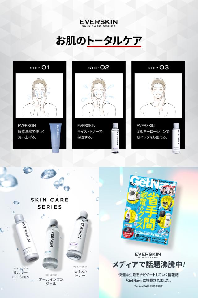 EVERSKIN酵素洗顔で洗顔した後は、エバースキン スキンケアシリーズで保湿ケア。