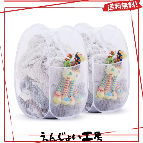 YOUDENOVA ランドリーバスケット 洗濯カゴ 折りたたみ メッシュ 省スペース 大容量 76L ハンドル付き ランドリーバッグ ランドリーボックス 収納 持ち運び可能(ホワイト?2セット)
