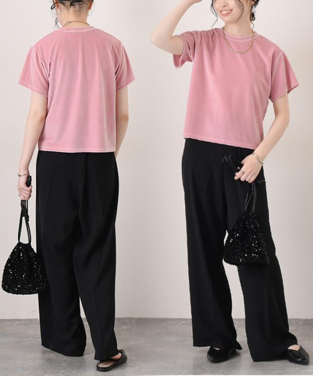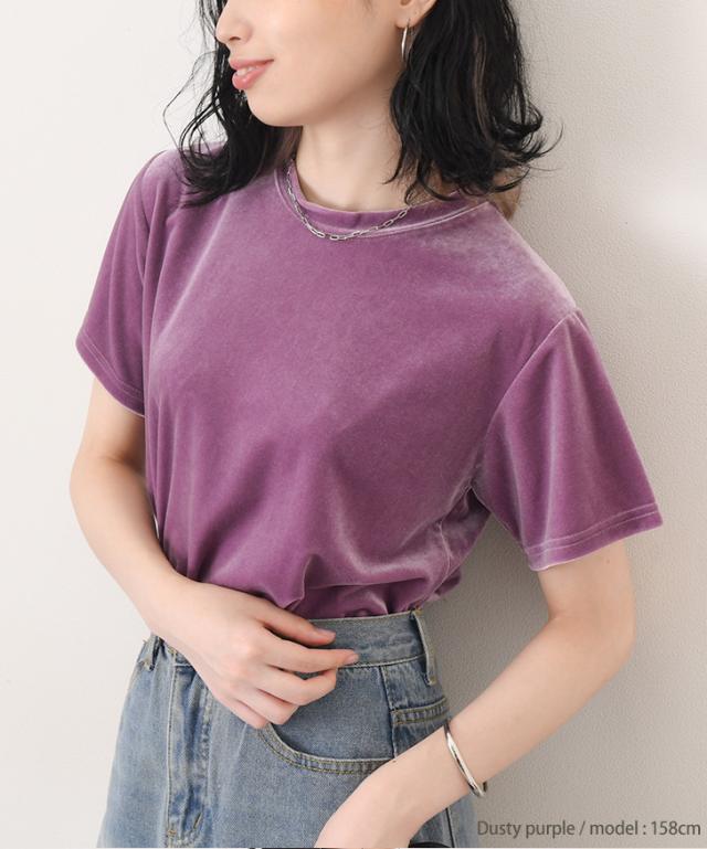 新作 シンプルワイドベロアトップス レディース カットソー Tシャツ インナー 半袖 きれいめ 上品 カジュアル デイリー 着回し オフィス OL お出かけ 秋 冬 トレンド 大人 可愛い 伸縮性 丸首 クルーネック