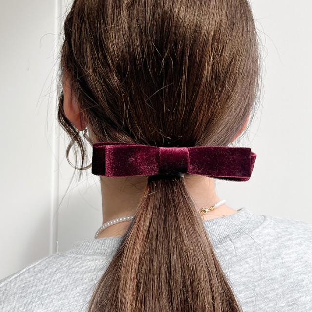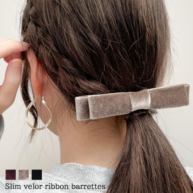 新作 スリムベロアリボンバレッタ レディース ヘアアクセサリー 小さめ ヘアクリップ 金具 ベルベット りぼん シンプル 上品 きれいめ 可愛い ガーリー フェミニン 卒業式 入学式 結婚式 パーティー 大人可愛い