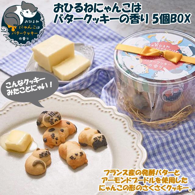 クッキー お菓子 スイーツ(おひるねにゃんこはバタークッキーの香り 5個BOX)にゃんこの形 猫 ネコ ねこ ティグル ミミ ミネット ジェニ シピ ティータイム ギフト ホワイトデー プレゼント