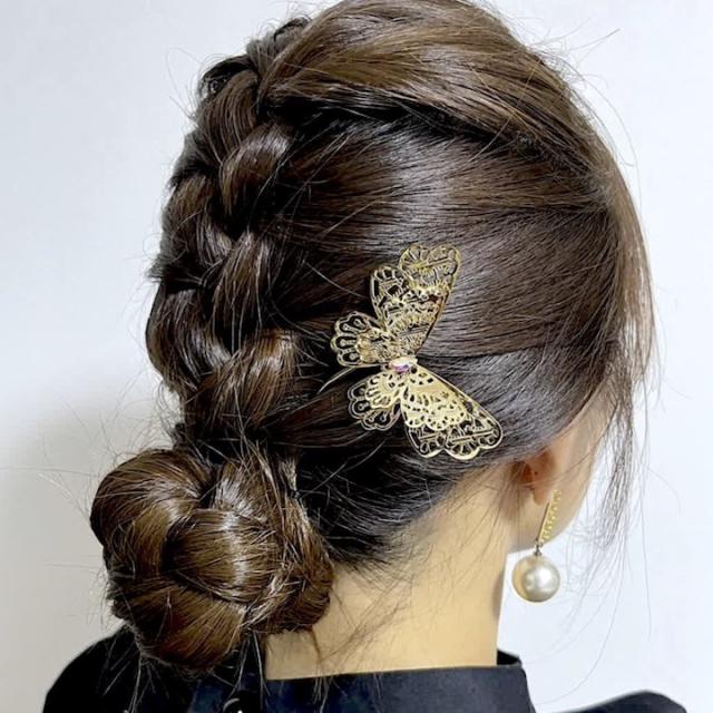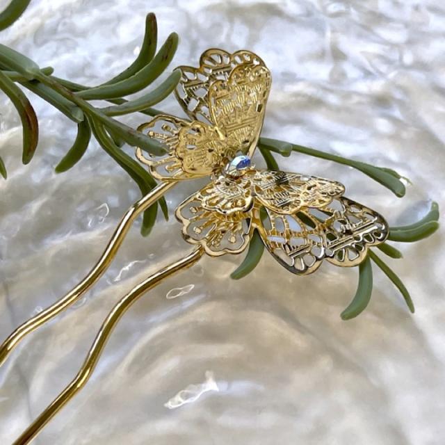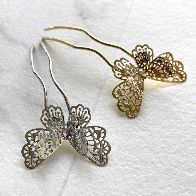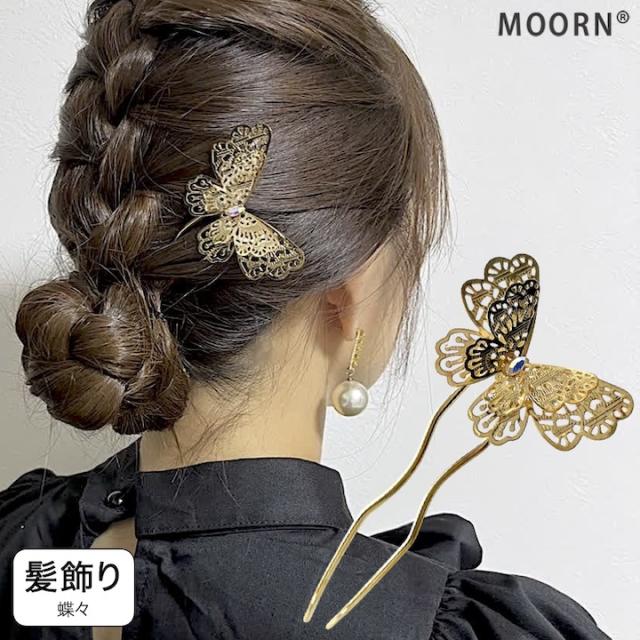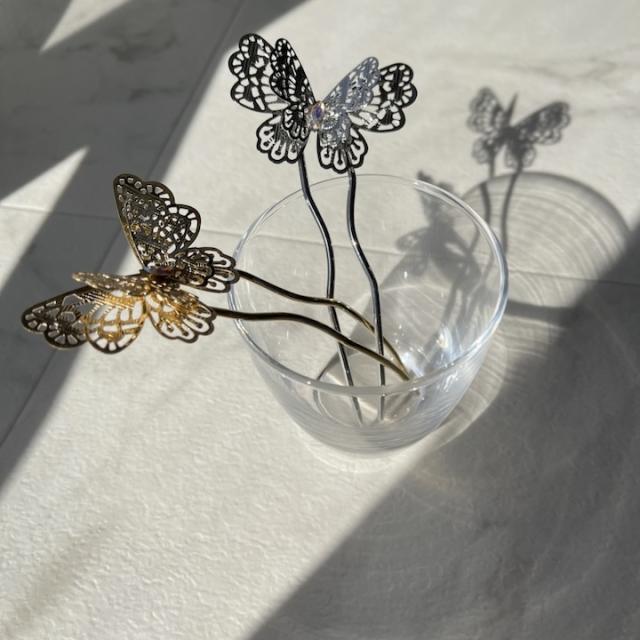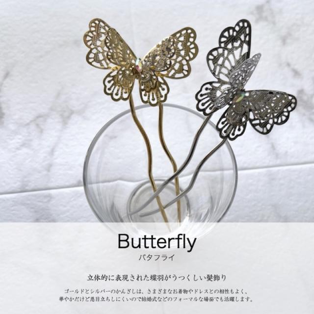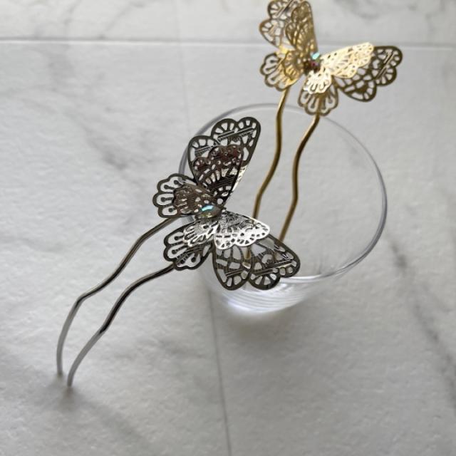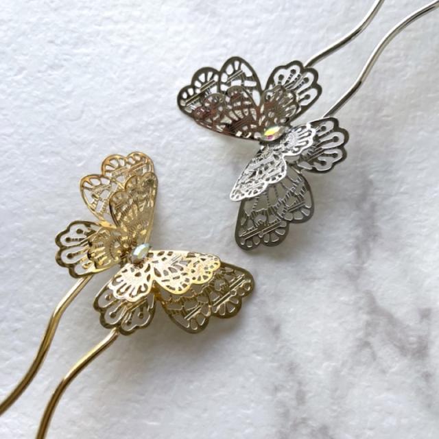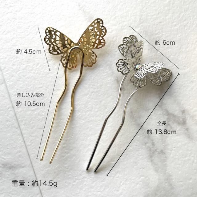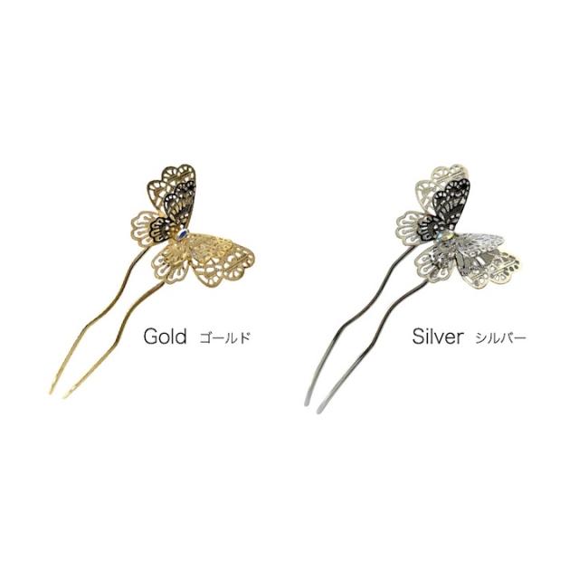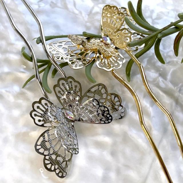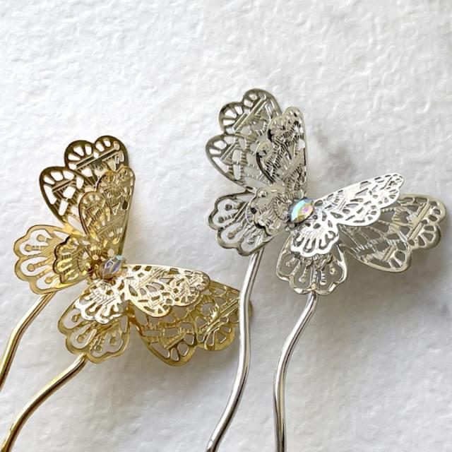 かんざし 簪 髪飾り 蝶 ヘアアクセサリー キラキラ 蝶々 バタフライ ゴールド シルバー 金 銀 結婚式 ゲスト 成人式 お祭り 夏祭り 着物 浴衣 和装 衣装 ドレス まとめ髪 10代 20代 30代 40代 50代 60代