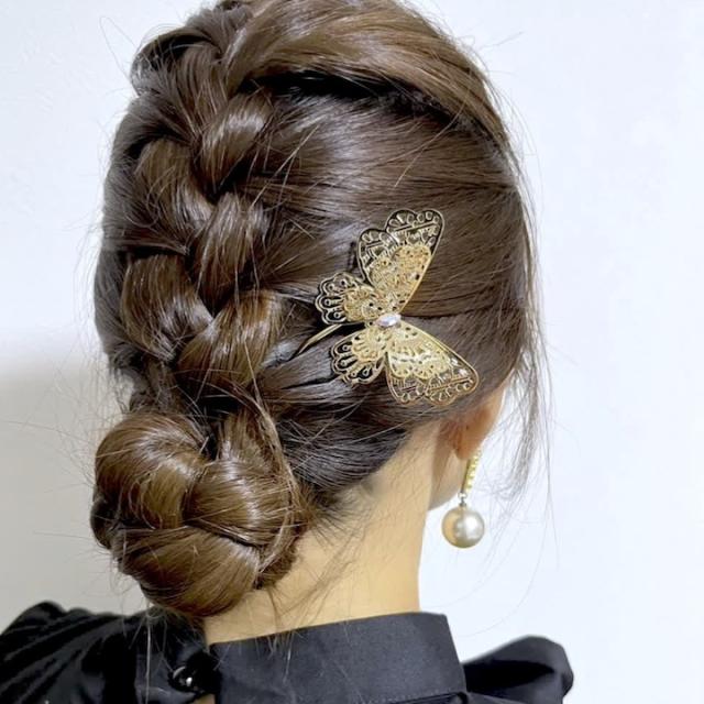 立体的に表現された蝶羽がうつくしい髪飾り。