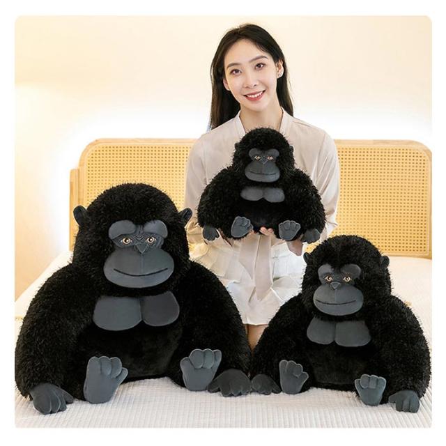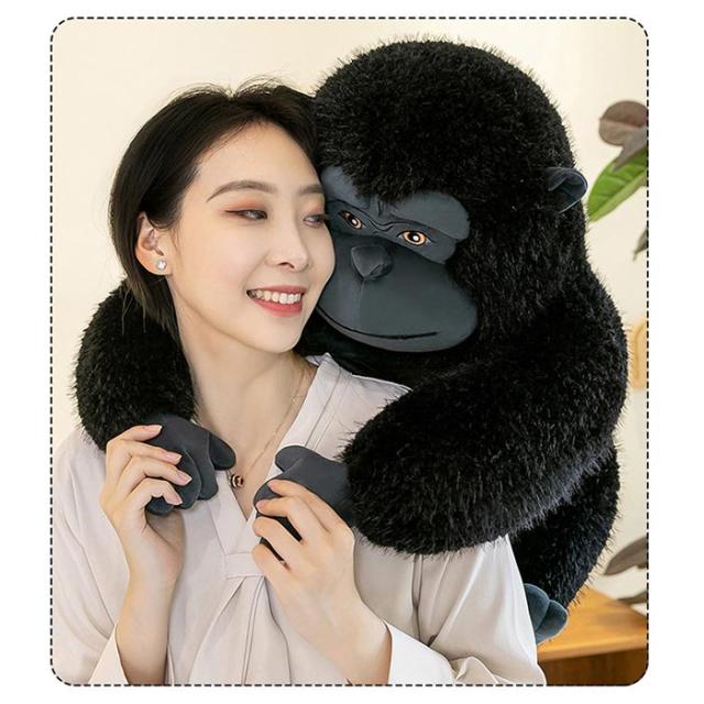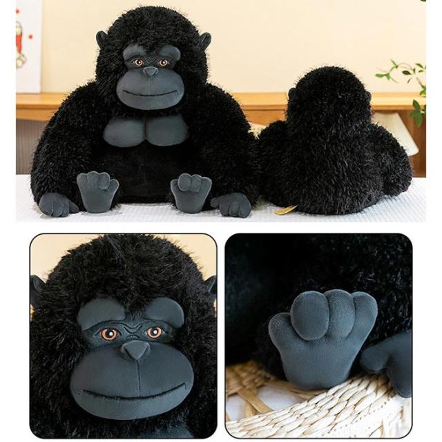 リアルなデザインが魅力のぬいぐるみゴリラは、抱き枕やおもちゃ、撮影道具、飾り物として多用途に使えるアイテムです。