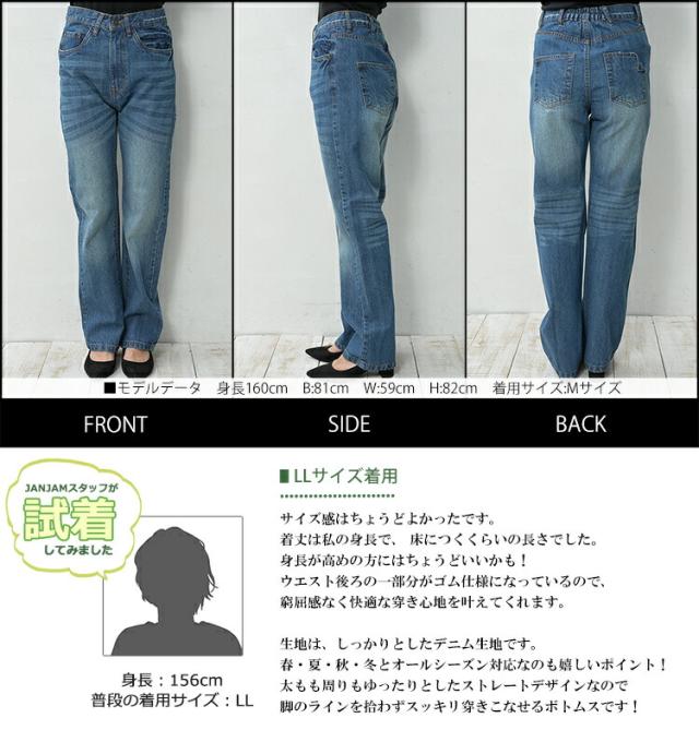 送料無料※沖縄/北海道対象外 大きいサイズ レディース スリムストレートデニム ロング丈 ヴィンテージ加工 パンツ ボトムス cotton100 LL/3L/4L ゆったりサイズ ぽっちゃり女子 プラスサイズ