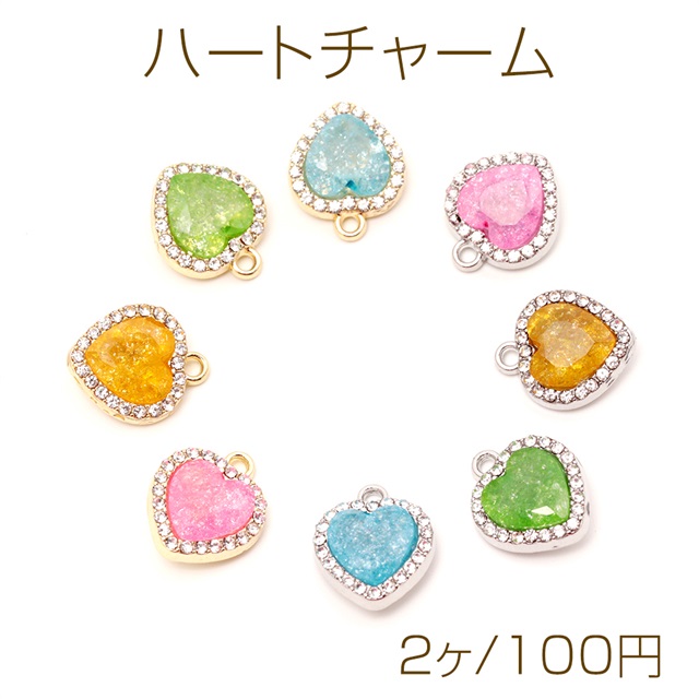 ハートチャーム ガラスハートチャーム 立体ハートチャーム ガラスストーン付き 1カン付き 約11×13mm (2ヶ)