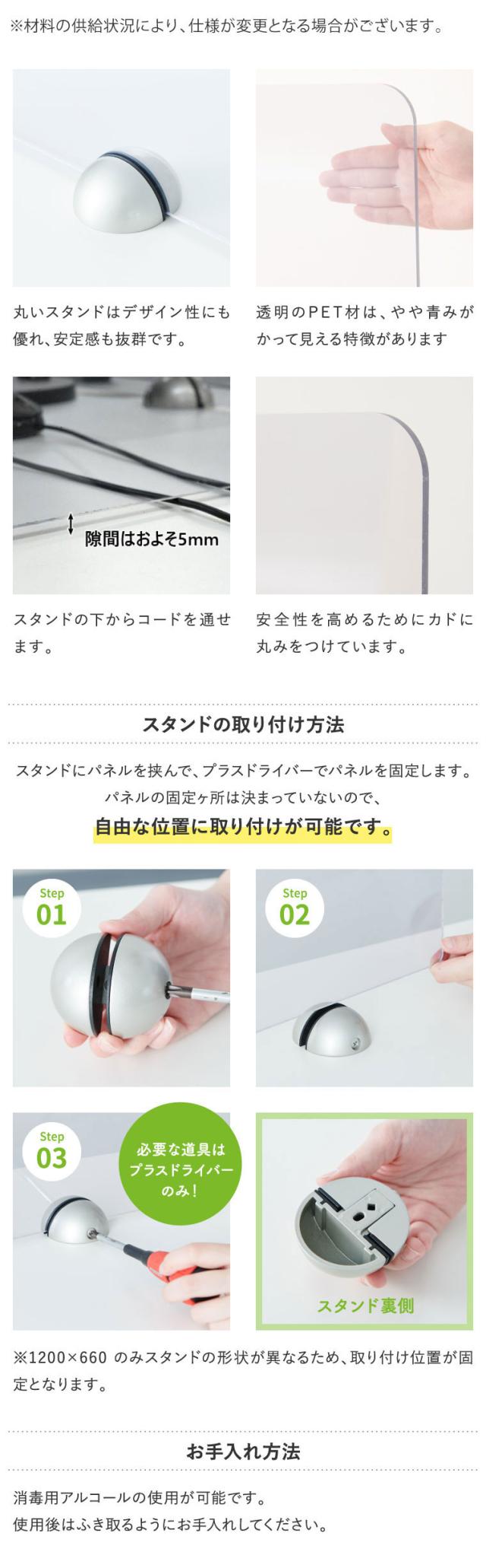 ※1200×660mm のパーテーションのみ、スタンドの形状が異なります。