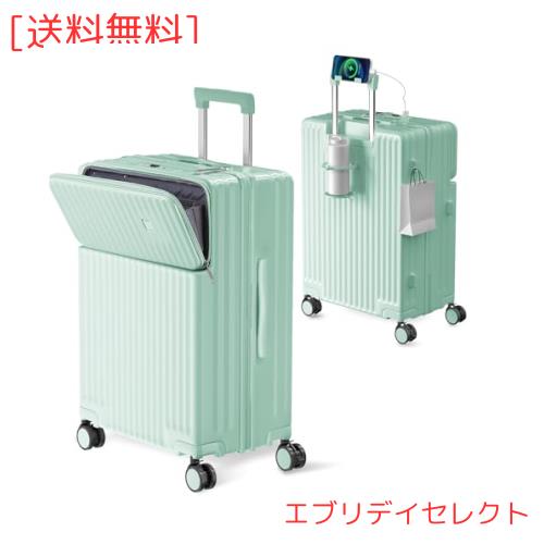 [Ashard] キャリーケース 多機能 スーツケース ストッパー付き Type C と USBポート付き フロントオープン ジッパー キャリーバッグ 電話