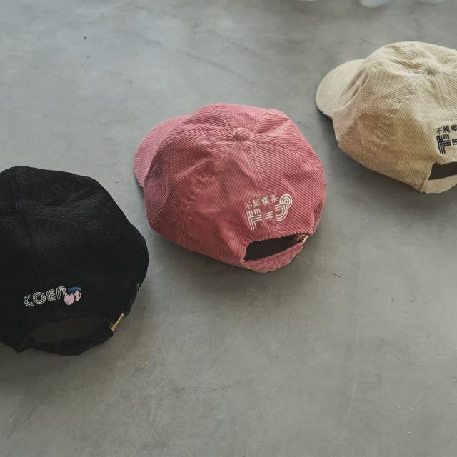 シーズンにマッチするコーデュロイのロゴ刺繍キャップ