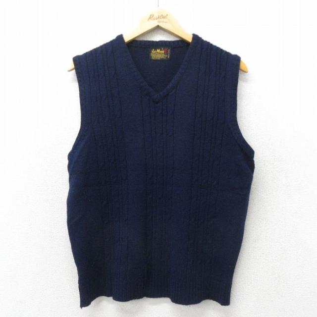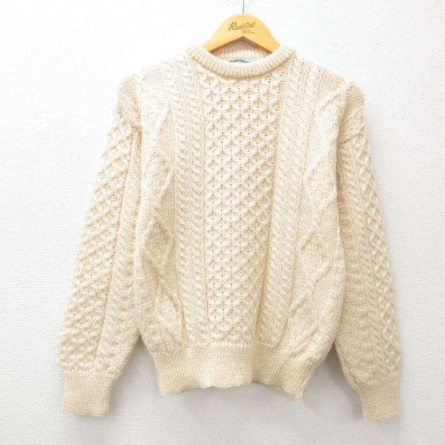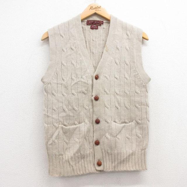 【商品名】 S★古着 ケーブル ニット ベスト メンズ 90年代 90s ウール ベージュ