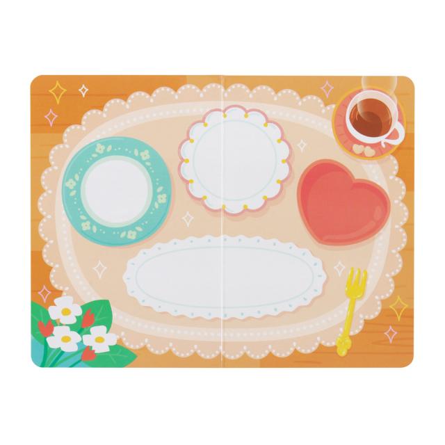 ねんど板のウラ面はケーキをお皿にのせて、カフェごっこができます。家族やお友達とごっこ遊びを楽しむ中で、自然とコミュニケーション能力も育まれます。