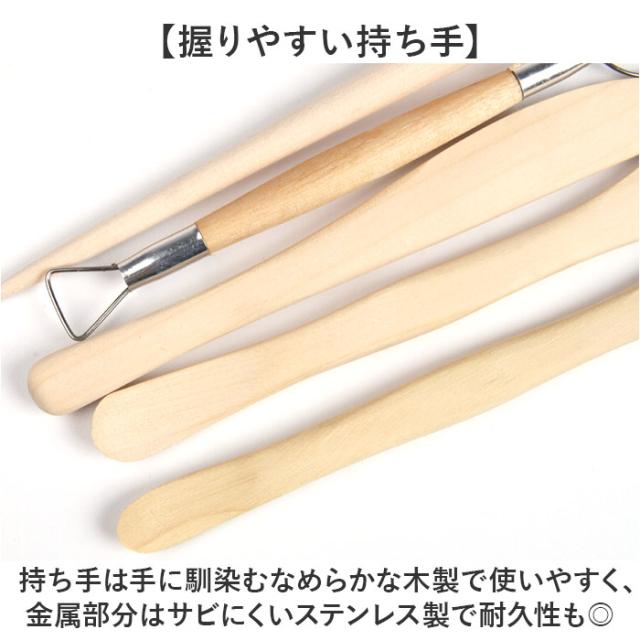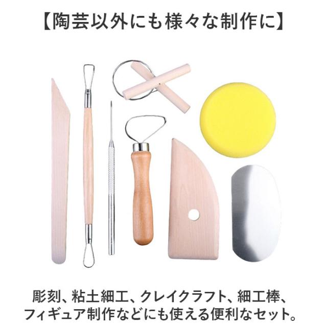 | 商品説明 | 【初心者から上級者まで!】 ・陶芸やフィギュア制作に欠かせない道具が一式揃った「陶芸道具 13点セット」が登場。 【細かな造形にも】 ・彫塑ベラやかきベラ、コテなど種類が複数あるので、細かな造形にも最適。 【握りやすい持ち手】 ・持ち手は手に馴染むなめらかな木製で使いやすく、金属部分はサビにくいステンレス製で耐久性も◎ 【陶芸以外にも様々な制作に】 ・彫刻、粘土細工、クレイクラフト細工棒フィギュア制作などにも使える便利なセット。 |