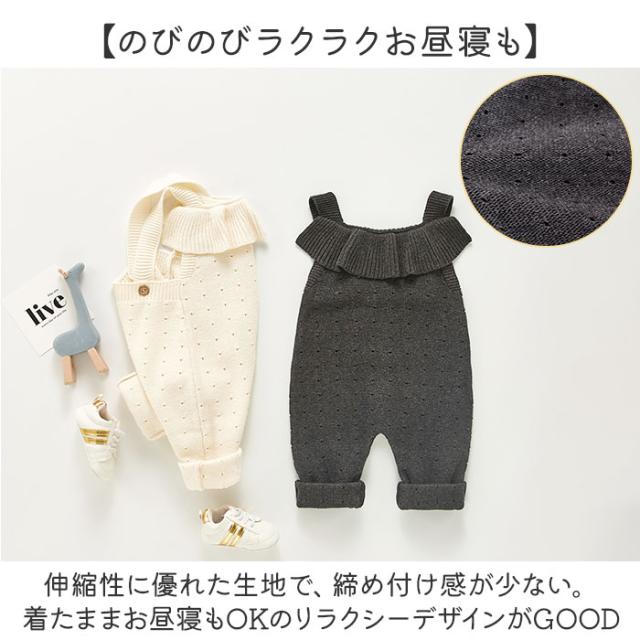 サロペット ベビー 通販 フリル ニット キッズ 子供 子ども ロンパース オールインワン オーバーオール 子供服 女の子 春 秋 冬 ベビー服 パンツ かわいい 可愛い オシャレ おしゃれ