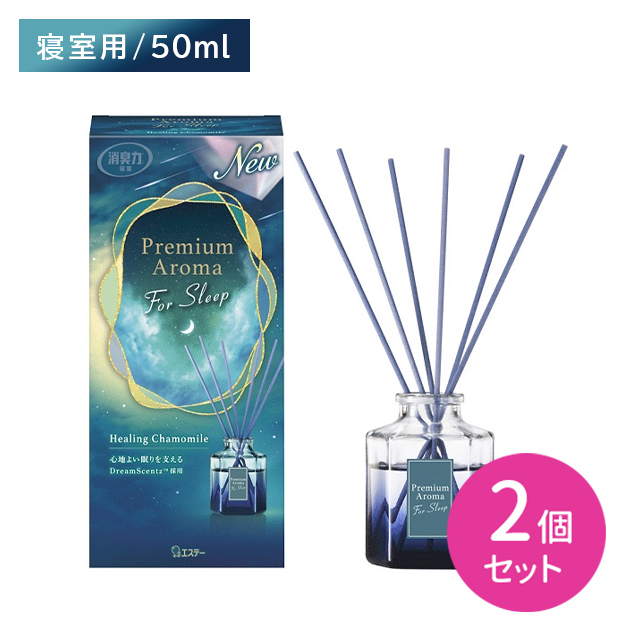 【2個セット】消臭力 Premium Aroma プレミアムアロマ For Sleep Stick 本体 ヒーリングカモミール スティック 本数調節 濃度5倍 就寝時 寝具 空間 室内 部屋 ベッドルーム 除菌 スタイリッシュ エステー