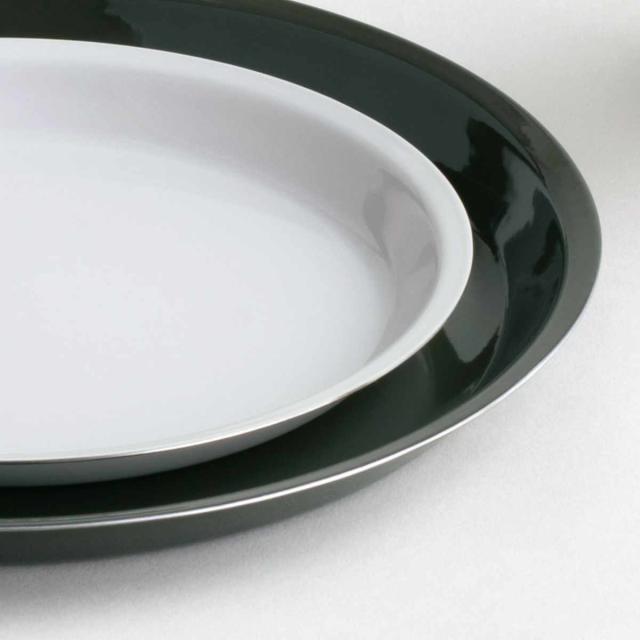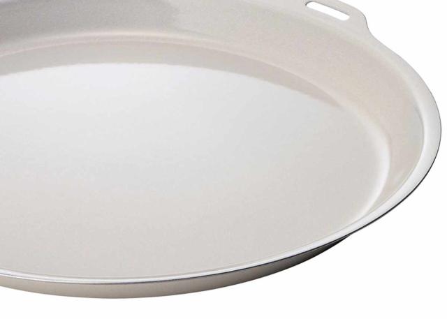 耐熱性・耐摩耗性に優れ、匂いが付かず、汚れが落としやすい琺瑯製。素地にステンレス材を採用することにより、丈夫でありながら薄くて軽いのも魅力です。高い技術により縁まで薄く仕上げています。