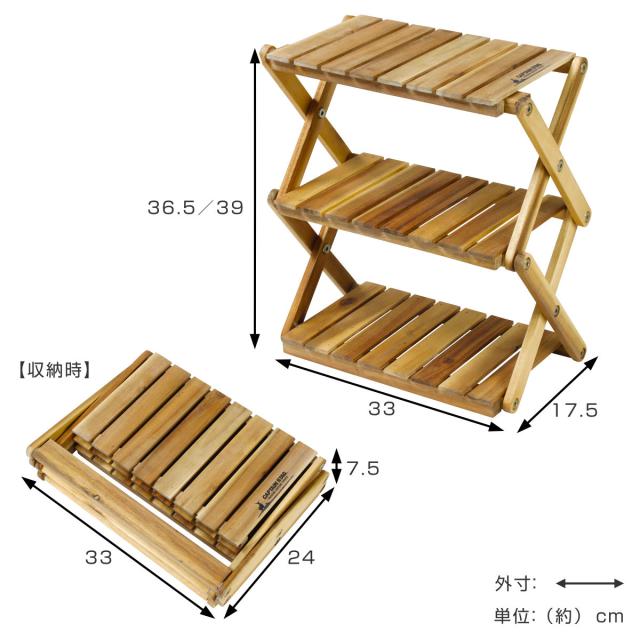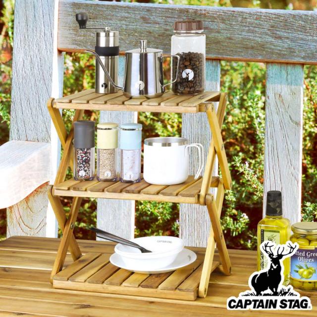 ラック CSクラシックス 木製3段MOVEラック ミニ キャプテンスタッグ ( CAPTAIN STAG 棚 飾り棚 オープンラック コンパクト 木製 3段 木製ラック 折りたたみ オープンシェルフ アウトドア キャンプ 天然木 )