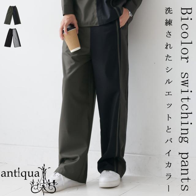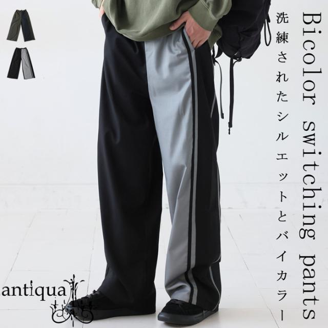 【検索ワード】配色切替ラインパンツ パンツ メンズ ボトムス ロング 配色 バイカラー アシメ アシンメトリー セットアップ シンプル ストレート ワイドストレート ワイド ゆったり 長ズボン 前フラット 後ろゴム リラクシー 楽ちん ラフ 大きめ 大きいサイズ サイズ展開 Medium Large ユニセックス 男性 男 かっこいい カッコイイ カジュアル antiqua treecafe アンティカ ツリーカフェ メンズファッション トレンド コーディネート 通販 ブランド 春 夏 秋 冬 オールシーズン あんてぃか