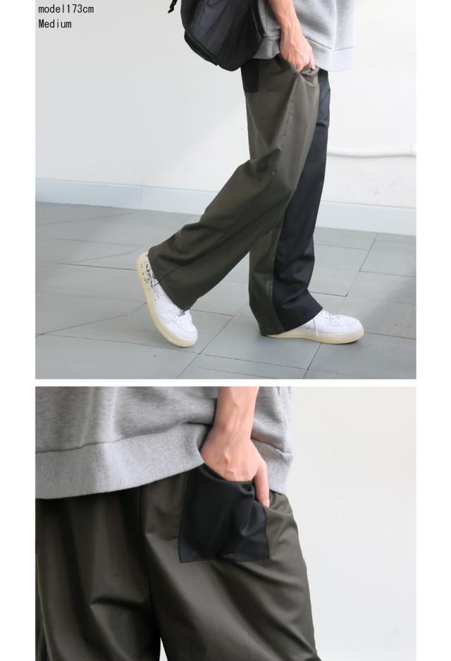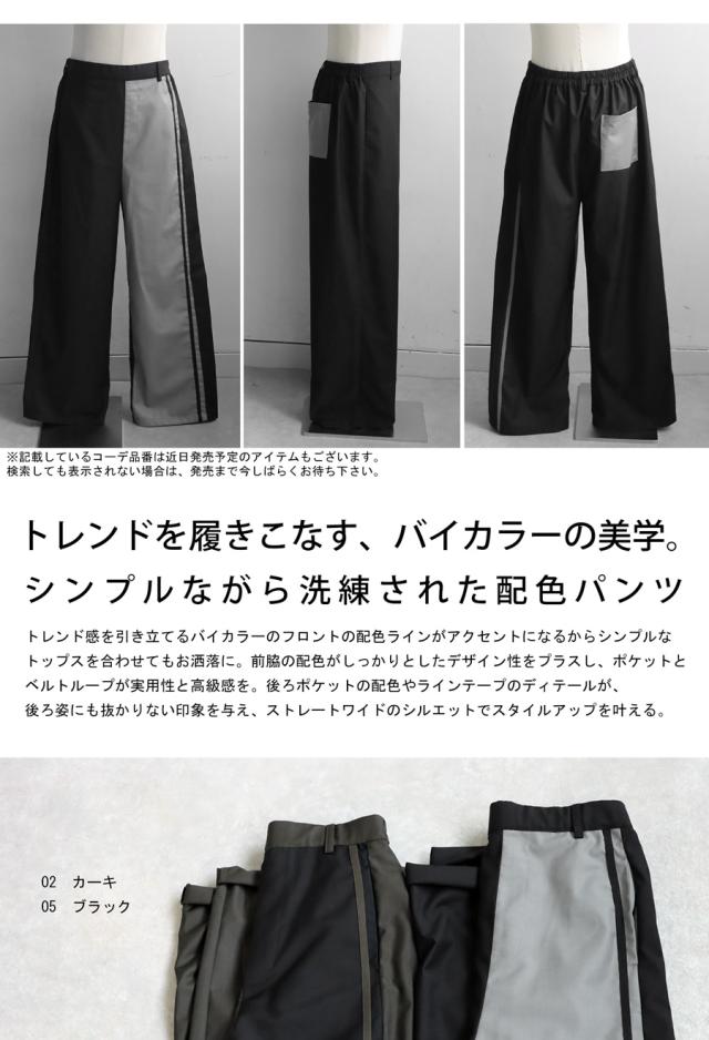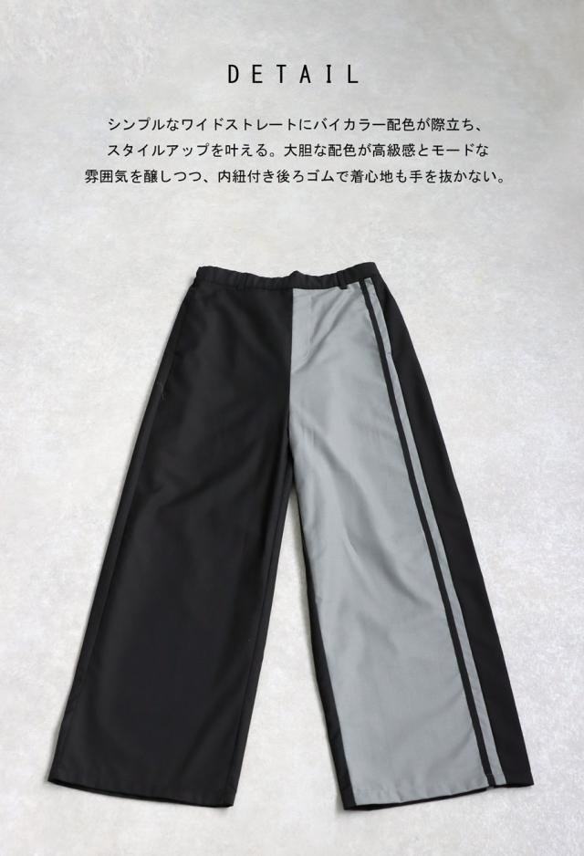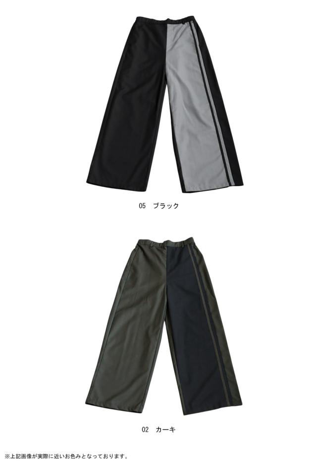 zk-00194z ロング 配色 バイカラー アシメ アシンメトリー セットアップ シンプル ストレート ワイドストレート ワイド ゆったり 長ズボン 前フラット 後ろゴム リラクシー 楽ちん