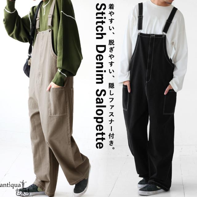 【検索ワード】ステッチ配色デニムサロペット サロペット メンズ ボトムス ロング ノースリーブ 綿100 デニム 配色デザイン ステッチ 綿 コットン シンプル ゆったり サロペ 長ズボン パンツ オールインワン オーバーオール つなぎ ファスナー 肩紐調節可 ポケット付き ユニセックス 男性 男 かっこいい カッコイイ カジュアル antiqua treecafe アンティカ ツリーカフェ メンズファッション トレンド コーディネート 通販 ブランド 春 夏 秋 冬 オールシーズン あんてぃか ベージュ カーキ ブラック 黒