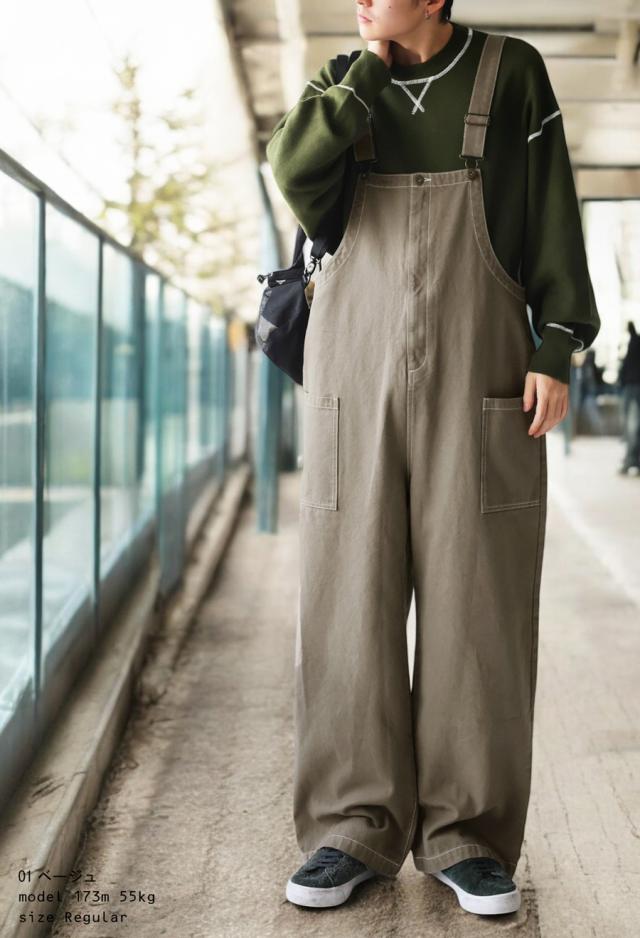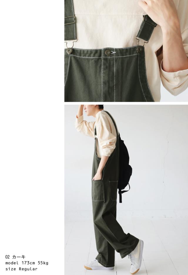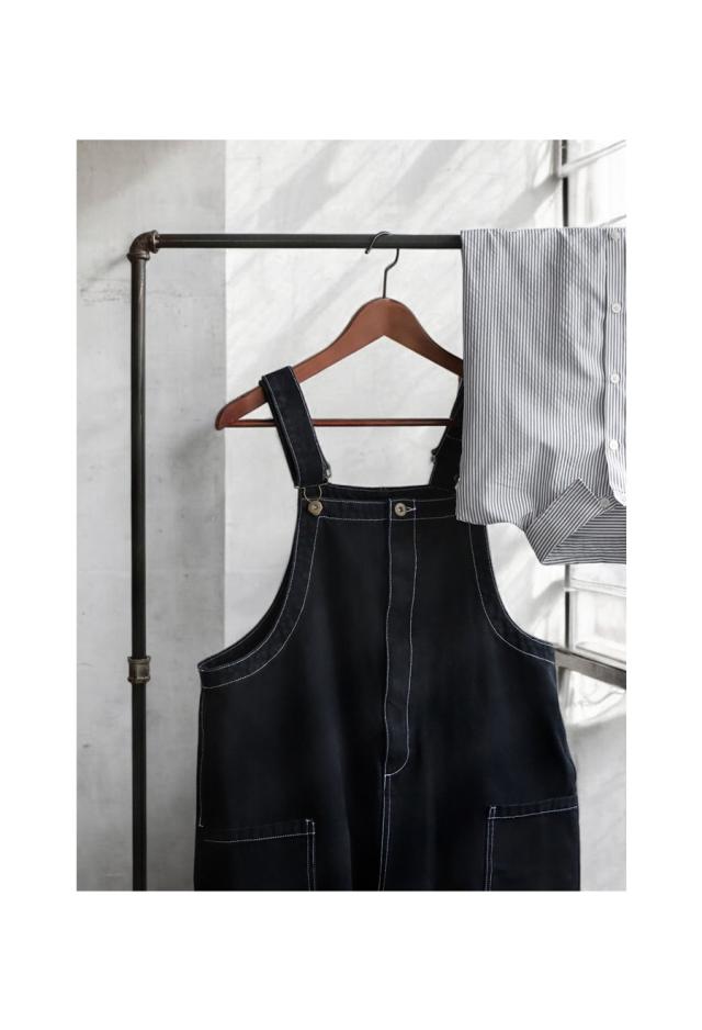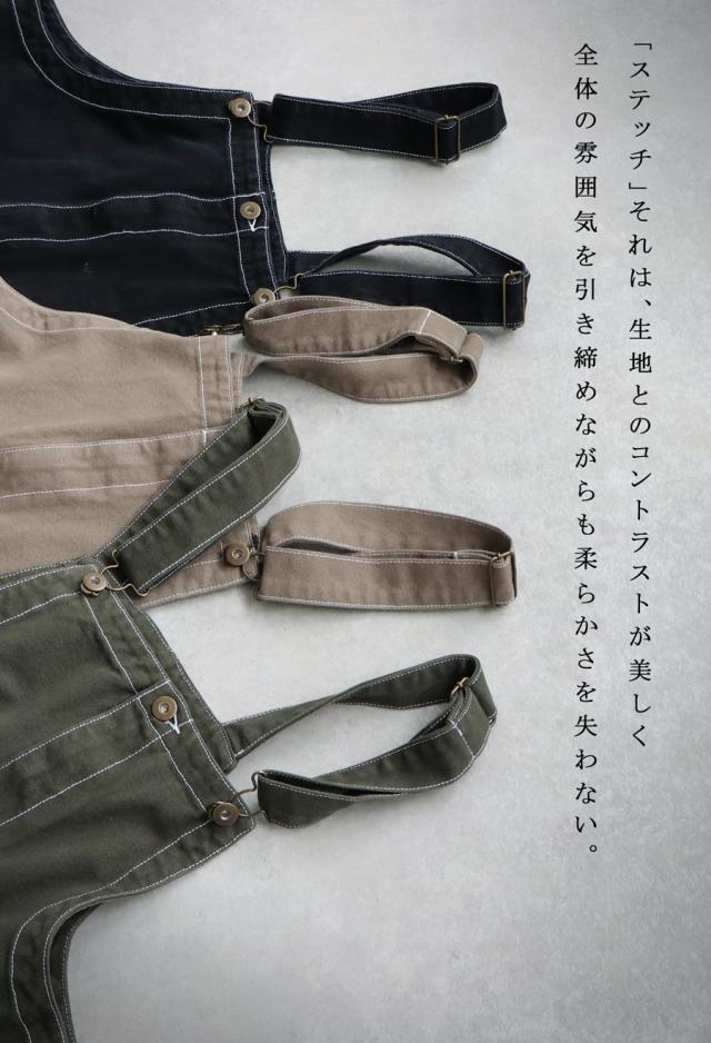 シンプルな中にさりげない遊び心を+するステッチ配色サロペット。