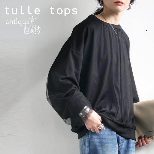 【検索ワード】チュール付トップス レディース トップス 長袖 丸首 クルーネック チュール シアー デザイントップス 無地 リブ プルオーバー 被り ショート丈 ゆったり きれいめ 着痩せ 細見え 上品 高級感 antiqua アンティカ 大人 おしゃれ 10代 20代 30代 40代 50代 60代 春 秋 冬 お洒落 カジュアル かわいい かっこいい あんてぃか