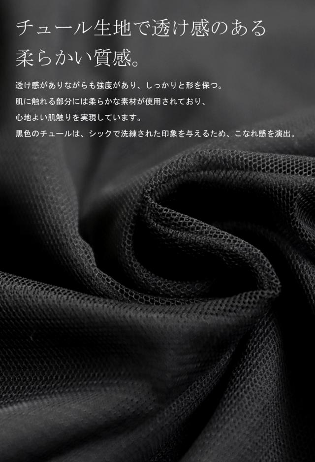 | 素材 | 本体:ポリエステル95% ポリウレタン5% チュールレース:ポリエステル100% リブ:ポリエステル95% ポリウレタン5% |