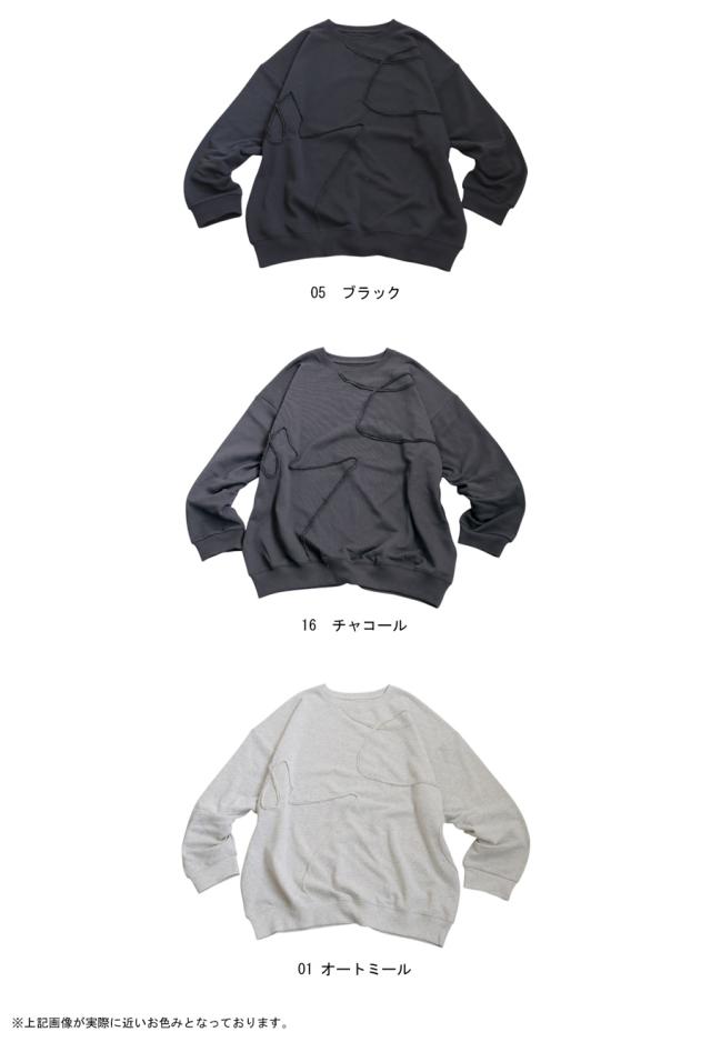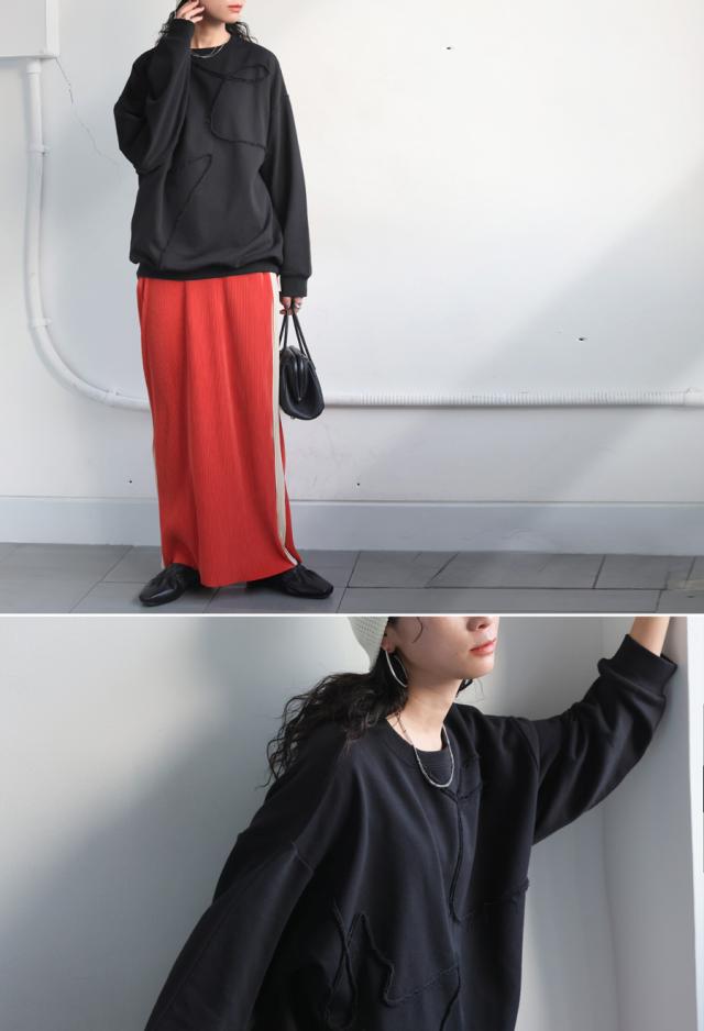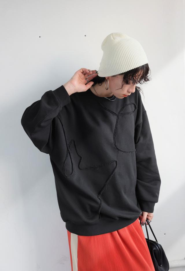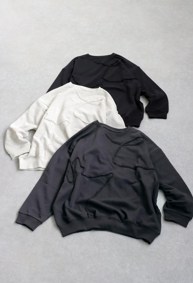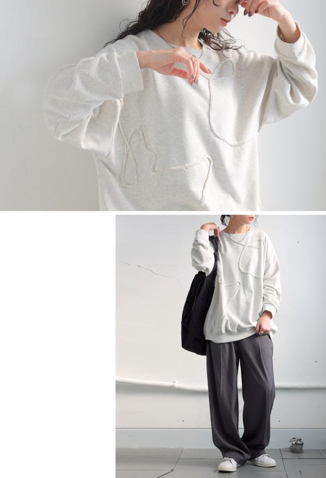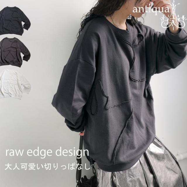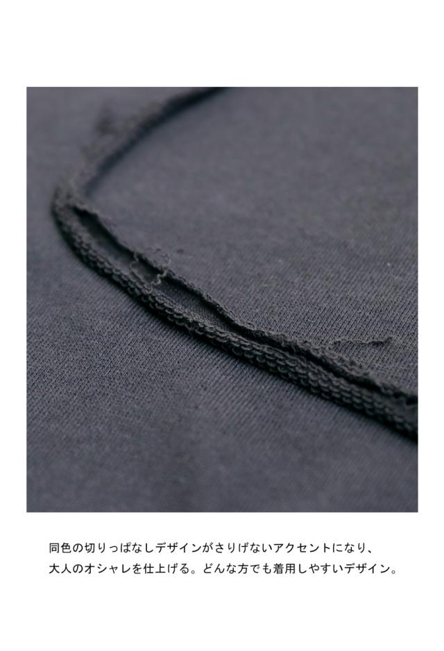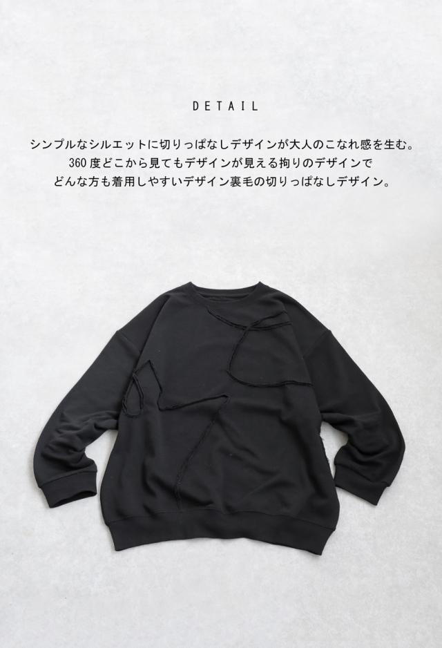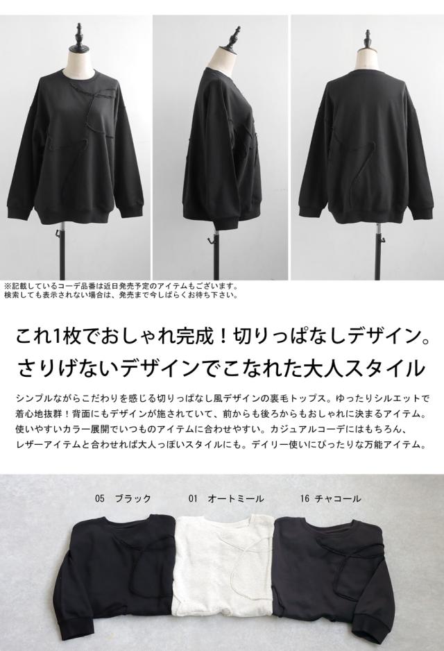 シンプルながらも拘りを感じる、切りっぱなし風デザインの裏毛トップス。
