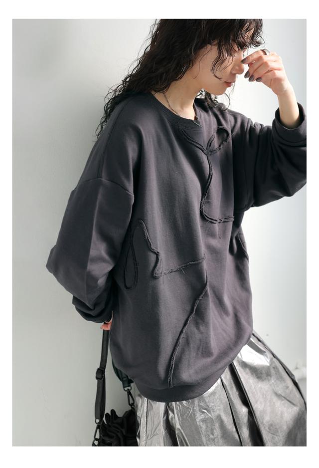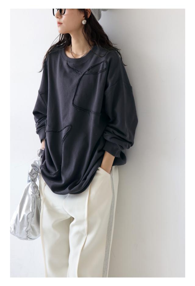 こなれた大人スタイルつくる『切りっぱなし風デザインスウェット』