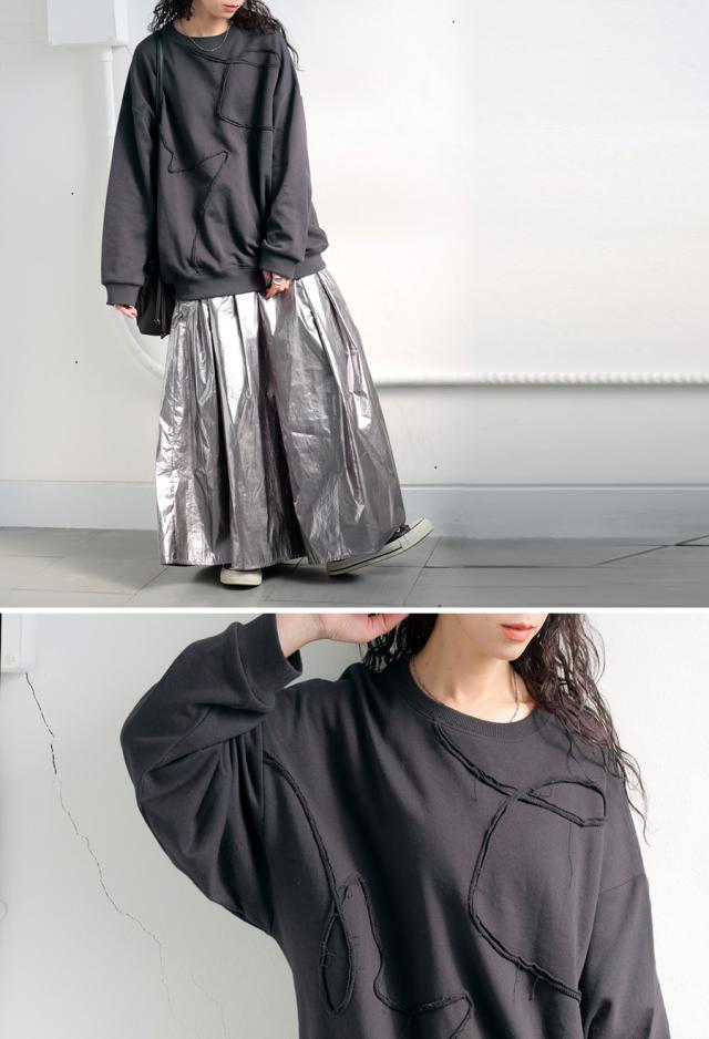 yp-00159 切りっぱなし クルーネック 丸首 スウェット シンプル 裏毛 裏毛トップス 裏毛プルオーバー プルオーバー スウェットトップス ゆったり ラフ 着痩せ 細見え レイヤード