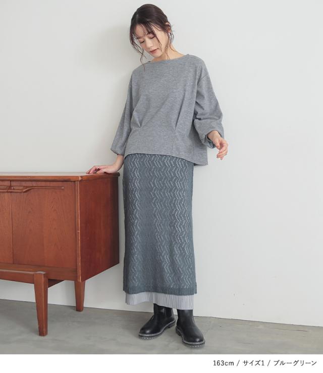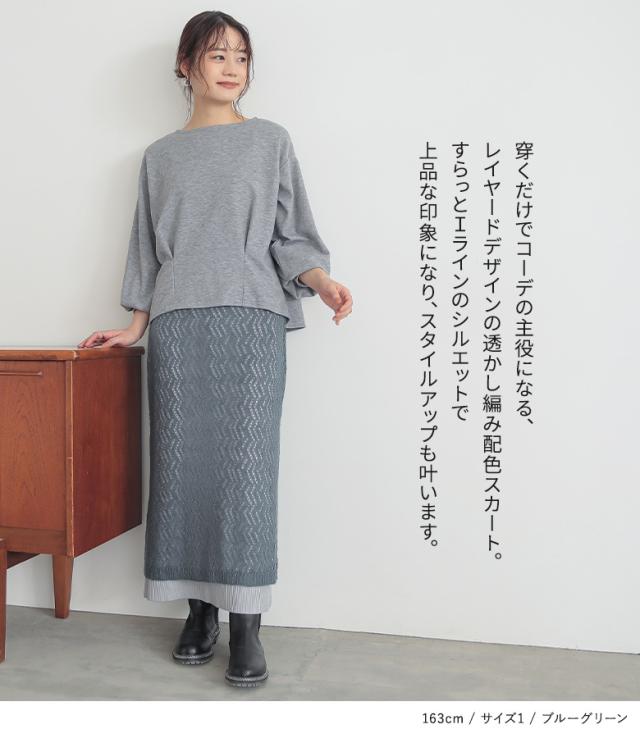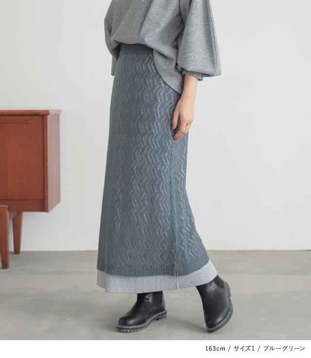 ナロースカート レディース ボトムス ロングスカート ニットスカート 透かし編み レイヤードデザイン Iライン マキシ丈 重ね着風 【TP】 ニット スカート マキシスカート タイトスカート n'OrLABEL ノア—ルレーベル 大人女子 大人可愛い お洒落可愛い 大人カジュアル ベーシック ニュアンス ラフ エフォートレス オフィスカジュアル ロング丈 ウエストゴム 総柄 配色 無地 フェイクレイヤード おうちで洗える 秋 冬 カジュアル シンプル ナチュラル モード キレカジ フェミニン 上品 きれいめ Sサイズ Mサイズ Lサイズ LLサイズ 3Lサイズ XLサイズ ぽっちゃり 体型カバー 大きいサイズ プラスサイズ 10代 20代 30代 40代 50代 60代 女子会 オフィス 通勤 通学 お買い物 お出掛け 旅行 リゾート レジャー おしゃれ お洒落 トレンド 流行 osharewalker オシャレウォーカー おしゃれうぉーかー グリーン 緑 ブルーグリーン ブラウン 茶色 グレー 灰色 ブラック 黒 バイカラー[ID]14bm0g8[n'OrLABELレイヤード透かし編みナロースカート]