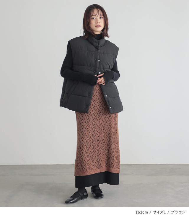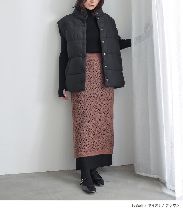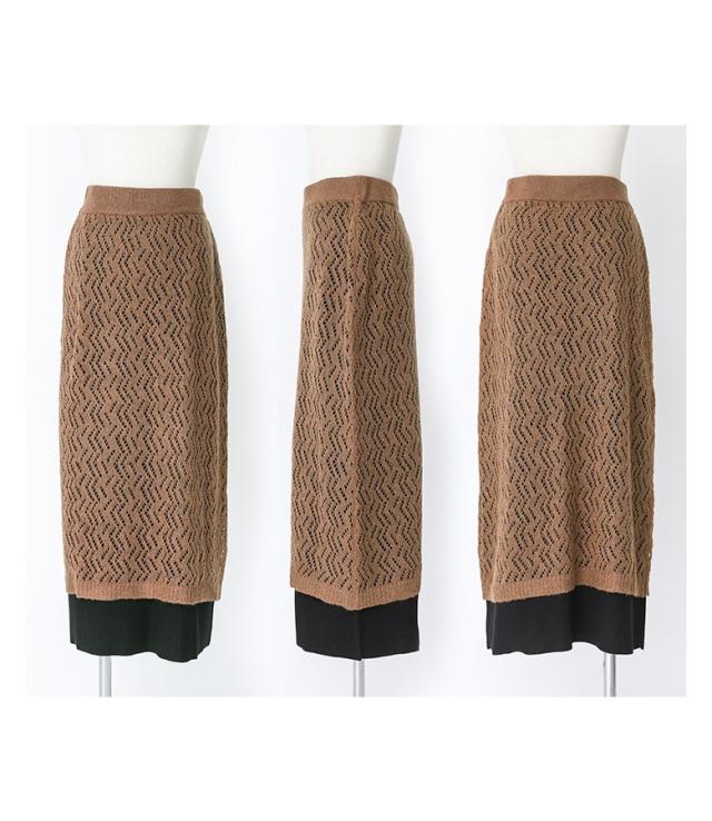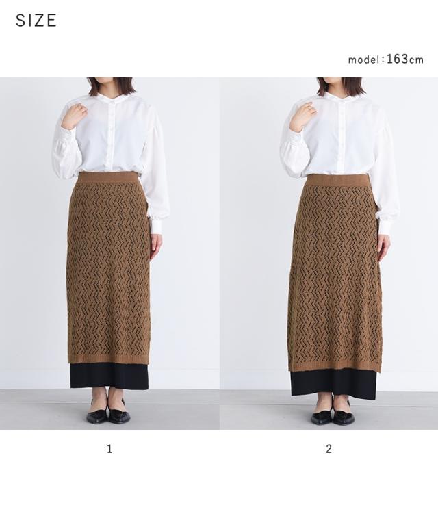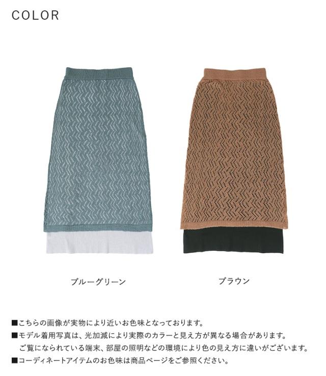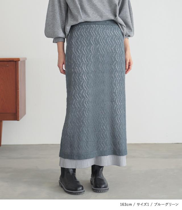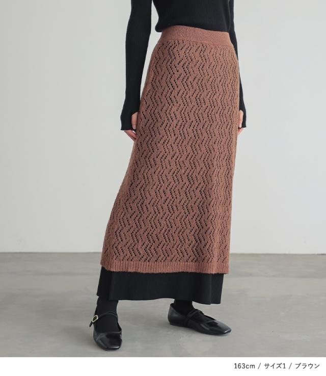 最大1000円オフ26日10時迄 『レイヤード透かし編みナロースカート』【メール便不可】【20】[ナロースカート レディース ボトムス ロングスカート ニットスカート 透かし編み レイヤードデザイン Iライン マキシ丈 重ね着風]