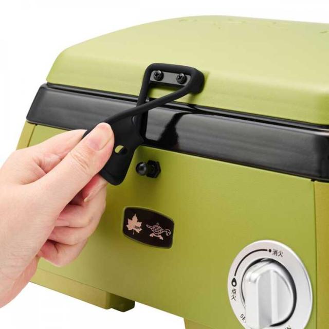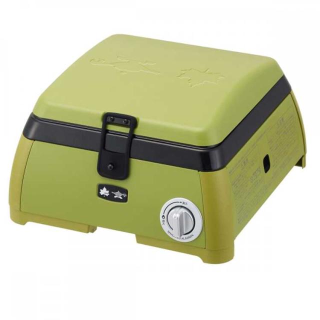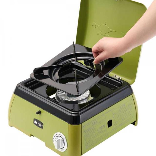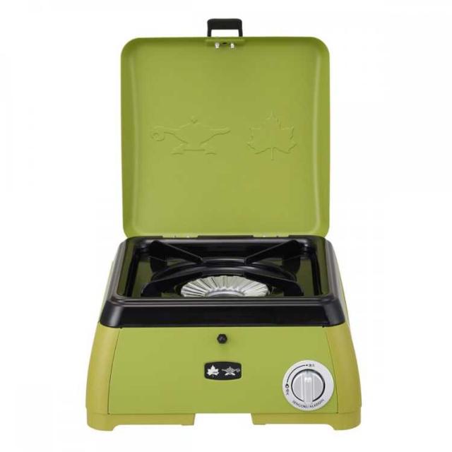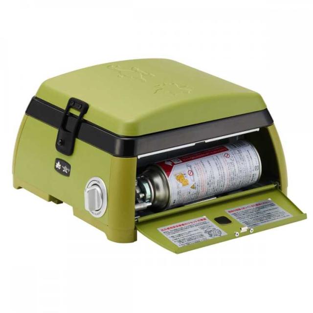 仕様:LOGOSオリジナル限定カラー、カセットボンベ式の1バーナー、ボンベは本体下部にセットするのでテーブル上で場所をとりません、燃料は手軽に使えるカセットボンベ、圧力感知安全装置付、耐荷重は20kgでダッチオーブンなど重量のある調理器具も使用いただけます、ベルトで固定できるので移動時にトップカバーが外れる心配がありません、汁受け部分は取り外し可能でお手入れ簡単