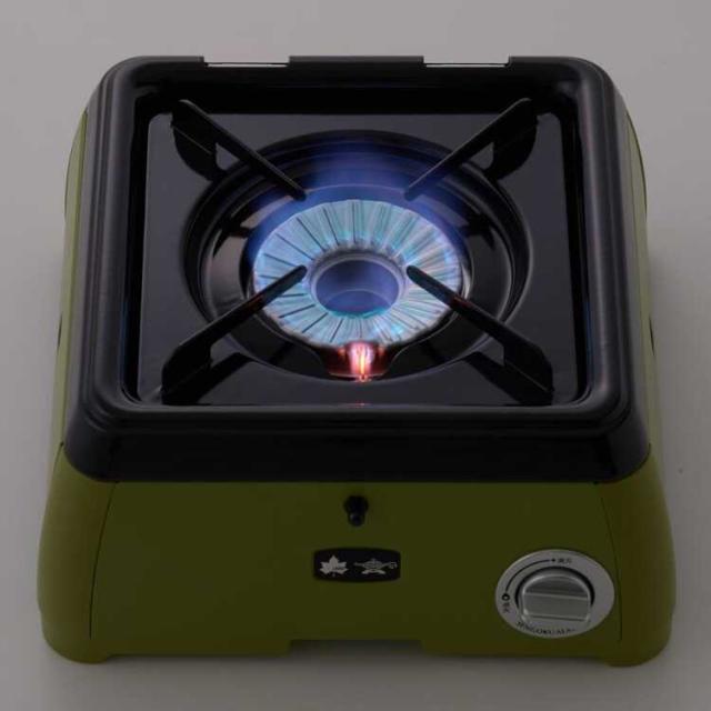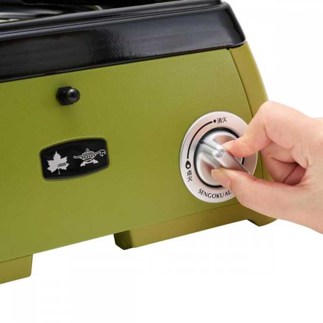 LOGOS×SengokuAladdinのコラボレーション!kama-doのロゴス限定カラー。「SengokuAladdin」で人気の、持ち運びに便利なコンパクトサイズのコンロ「kama-do」とコラボ。ロゴス限定カラーは自然なグリーンの色合いが特徴的で、他アイテムとの相性も抜群。トップカバーはランプマークと、LOGOSのロゴマークのメープルリーフが入ったコラボ限定デザインです。コンパクトなので持ち運びしやすく、室内でのご使用はもちろんのことアウトドアシーンでも活躍します。最大火力は、2.9kWで本格料理もお楽しみいただけ、高火力からとろ火まで料理に合わせた火力調整が可能です。耐風性に優れたトルネードバーナーの搭載により、炎が中央に集まり効率よく温めます。バーナーを本体に潜り込ますように配置した構造と、取り外し可能な風よけのトップカバー採用で、風が吹いても火が消えにくく、アウトドアにも最適です。